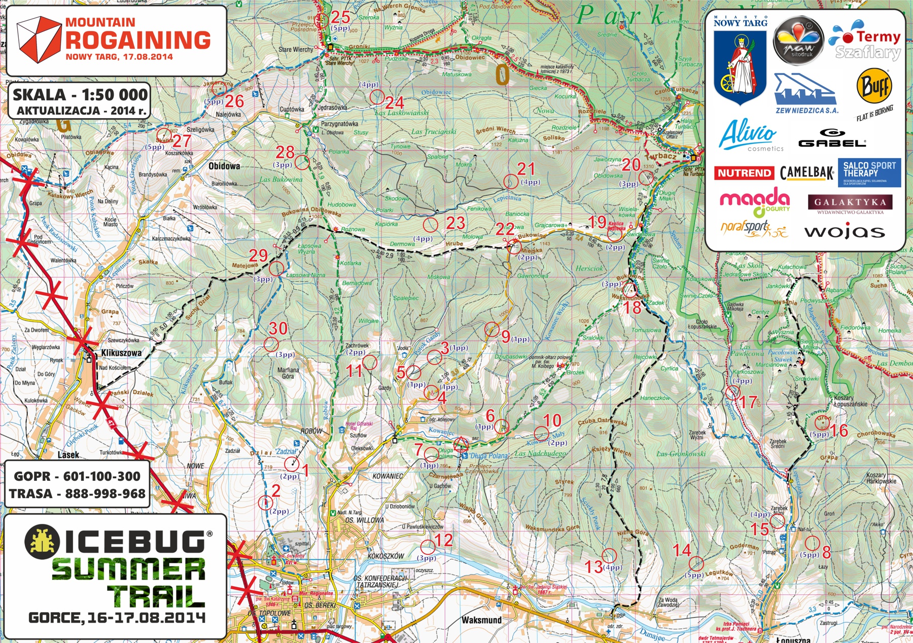 W ostatni weekend w Gorcach odbył się letni festiwal biegania organizowany pod nazwą Icebug Summer Trail. Niektórzy pewnie pamiętają, że podobna rekreacja przyciągnęła zimą przeszło 400 śmiałków. Tym razem na trasach przygotowanych przez organizatorów pojawiło się ok. 170 zawodników rywalizujących w dwóch, a nawet trzech, zupełnie różnych konkurencjach. Startując w sobotę w 16-kilometrowym biegu górskim można było jednocześnie zaliczyć Mistrzostwa Polski w Zbieganiu Górskim, a w niedzielę pójść na 6-godzinne roztruchtanie z mapą, czyli wziąć udział w biegu na orientację reklamowanym jako Mountain Rogaining.