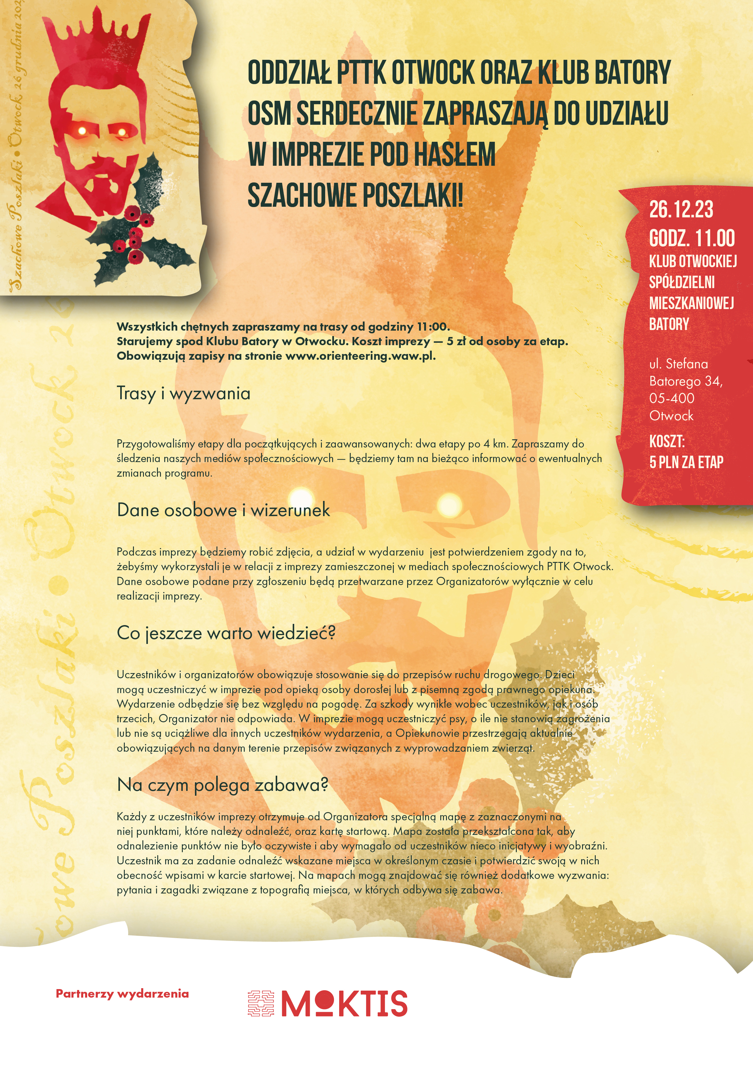 Więcej informacji już niebawem w mediach społecznościowych PTTK Otwock, a szczegóły - w załączonym regulaminie. Partnerem wydarzenie będzie jak zwykle Miejski Ośrodek Kultury, Turystyki i Sportu w Otwocku.